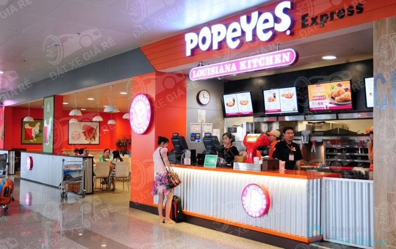 Gà rán Popeyes – Một quán ăn ngon gần sân bay Nội Bài được thực khách lựa chọn phổ biến. Bởi hương vị gà ở đây được tẩm ướp và chế biến riêng theo công thức chuyên biệt. Một số món ngon phù hợp với mọi người như: gà nhật, gà chiên cay, cơm gà,… Đặc biệt, nhân viên tại đây vô cùng thân thiện và giá thành siêu hời.